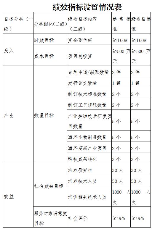 资金安排与目标任务相匹配,采用量化指标分别从专利申请/获取数量、产业关键技术研发项目数量、海洋高新产业项目、科技成果转化等多方面进行细化指标设置。