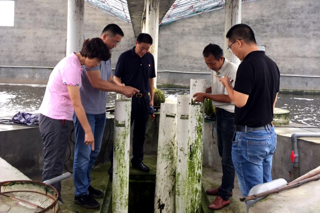 调研组走访了佛坛镇、东坂村相关养殖户,实地查看凡纳滨对虾育苗、养殖及东方鲀养殖情况,与养殖户座谈交流,了解产业发展现状和存在问题。调研组发现,当地海水养殖产生的尾水未经处理直排入海,其中一些养殖模式的尾水直接排放对环境造成了污染。随后调研组来到福建省海水鱼类苗种繁育中试基地(大径),考察了该基地的“海水池塘循环水养殖模式”项目实施情况,肯定了该模式是解决池塘养殖尾水排放的一种有效方式,认为值得大力推广。