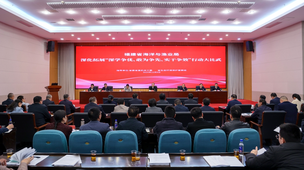 12月9日,福建省海洋与渔业局召开深化拓展“深学争优、敢为争先、实干争效”行动大比武暨年度述职汇报会议,深入学习贯彻习近平总书记在福建考察时的重要讲话精神,认真贯彻落实省委十一届七次全会精神,系统总结全年工作成效,科学谋划明年目标任务举措,推动全局上下在加快“海上福建”建设,推进海洋经济高质量发展中闯出新路、奋勇争先、作出示范、久久为功,为奋力推进新福建建设作出新贡献。局党组书记、局长颜志煌出席会议并讲话。省委省直机关工委副书记吴镇江、省生态环境保护督察组二级巡视员郑健欣现场观摩指导并点评,局党组成员、驻局纪检监察组组长陈晓光对党风廉政建设提出工作要求。