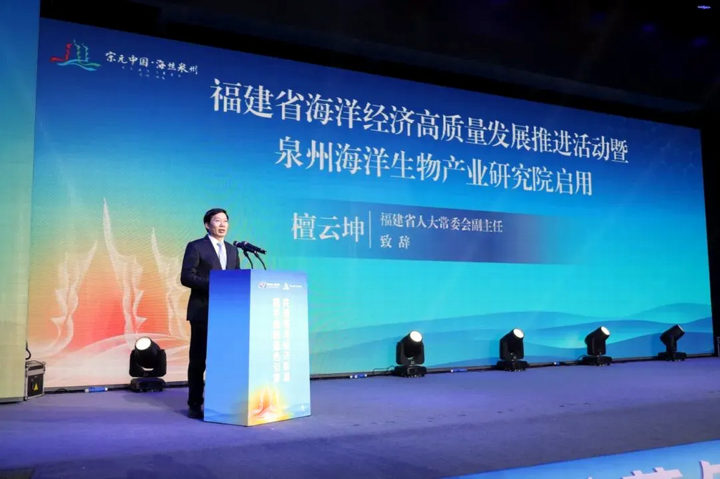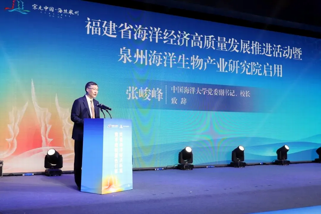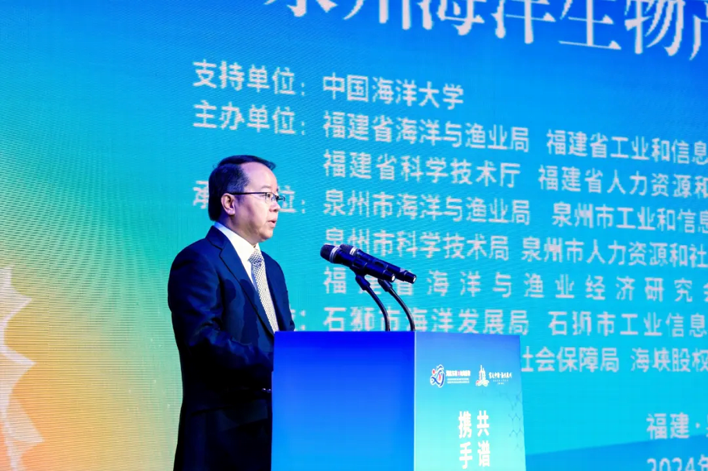 为深入学习贯彻习近平总书记在福建考察时重要讲话精神,认真落实省委十一届七次全会关于加快“海上福建”建设部署要求,培育壮大海洋新质生产力,赋能海洋经济高质量发展,12月16日,由中国海洋大学指导,省海洋与渔业局、省工业和信息化厅、省发展和改革委员会、省科学技术厅、省人力资源和社会保障厅、泉州市人民政府联合主办的推进海洋经济高质量发展百场项目对接暨泉州海洋生物产业研究院启用活动在泉州石狮顺利举办。省人大常委会副主任檀云坤,中国海洋大学党委副书记、校长张峻峰,中国工程院院士、中国海洋大学教授、泉州海洋生物产业研究院院长薛长湖,泉州市政协党组书记、主席肖汉辉出席活动并致辞,北京工商大学孙宝国院士,中国海洋大学麦康森院士、包振民院士出席活动,省海洋与渔业局党组书记、局长颜志煌主持活动。