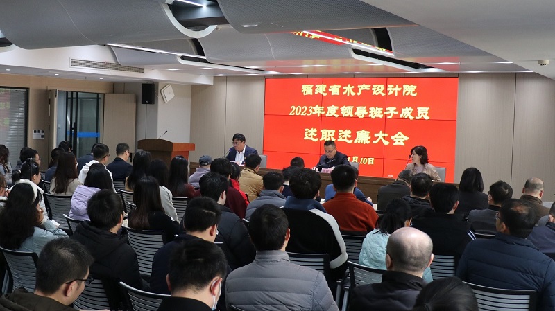 1月10日,省水产设计院召开2023年度领导班子成员述职述廉大会。省海洋与渔业局党组成员、副局长翁新平,局机关党委(人事处)二级调研员林芳到会指导,并对设计院班子及成员进行考核测评。设计院全体干部职工参加会议。