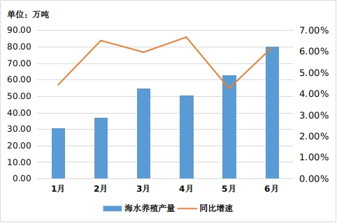 3.2022年1-6月份全省海水养殖产量316.34万吨,同比增长5.69%。